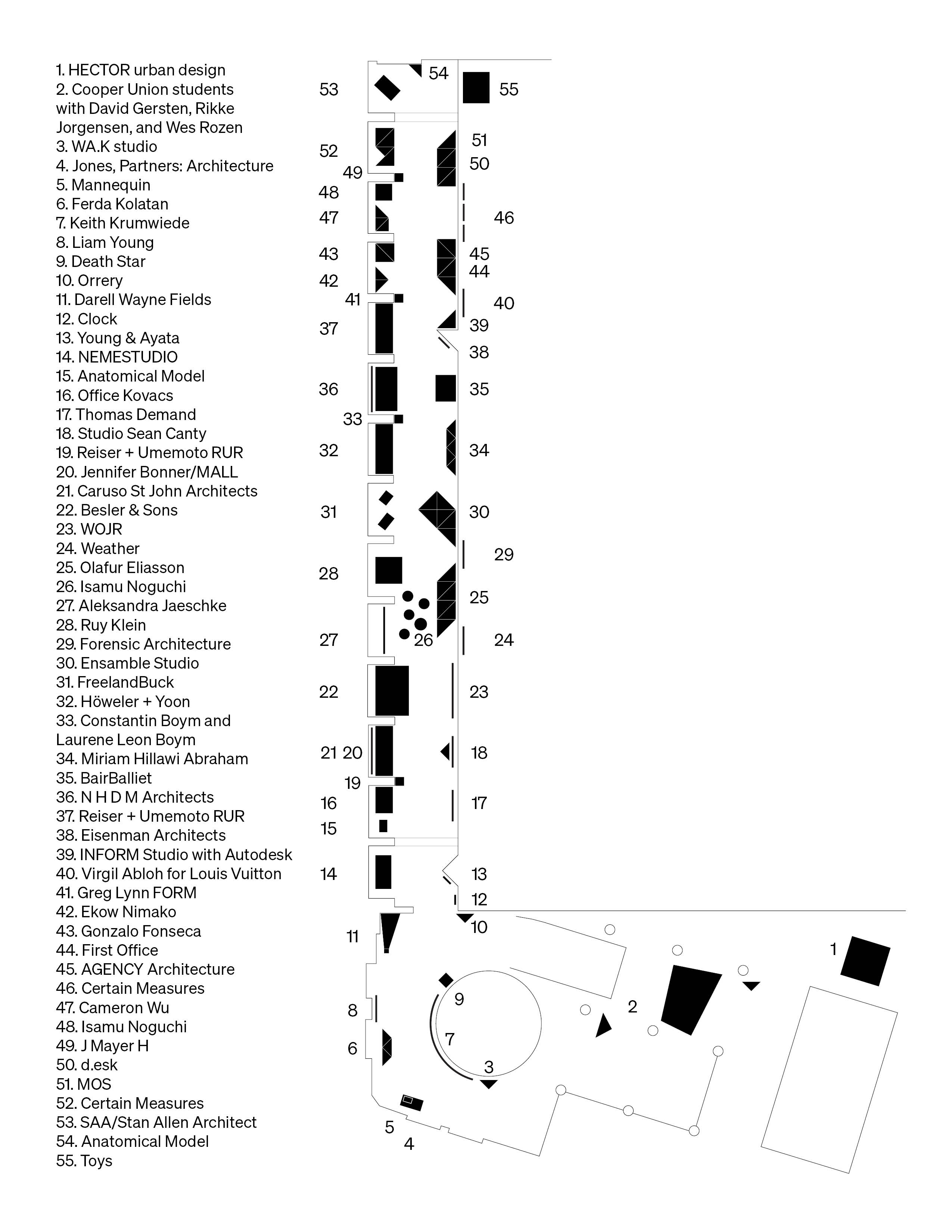 Anyone Corporation, who organized and curated the exhibition, investigated how models shape contemporary culture by projecting and eliciting social behavior. The models themselves, by a range of authors including Gonzalo Fonseca, Ekow Nimako, Thomas Demand, First Office, Ensemble, Sean Canty and many others, looked at everything from formal arrangements to weather analyses through diverse media.