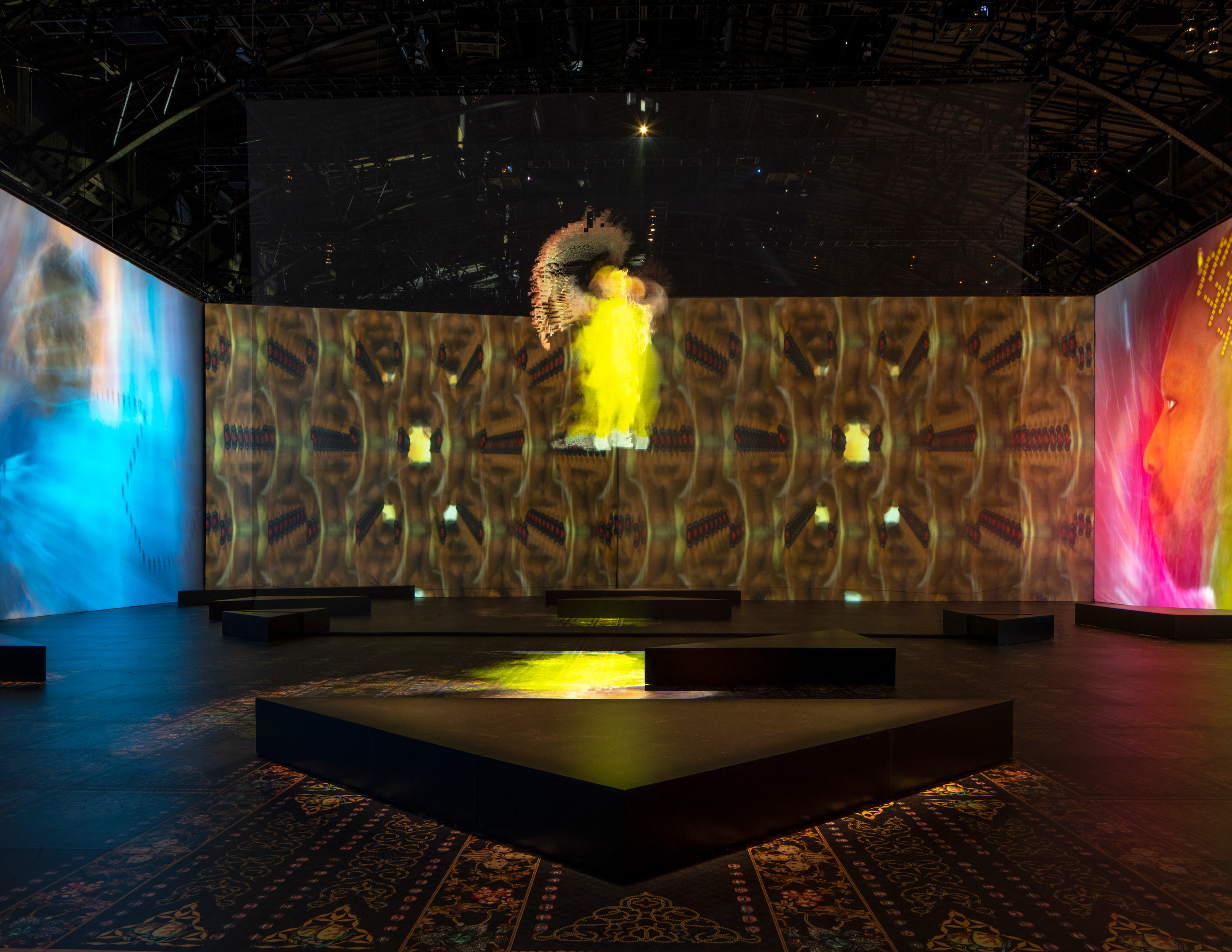 For this exhibition, we worked with the artist Rashaad Newsome to create a two-part environment: a large gallery for a 40-foot hologram and an auditorium for 350 spectators, structured around moments of inverting the audience’s gaze and expectation.