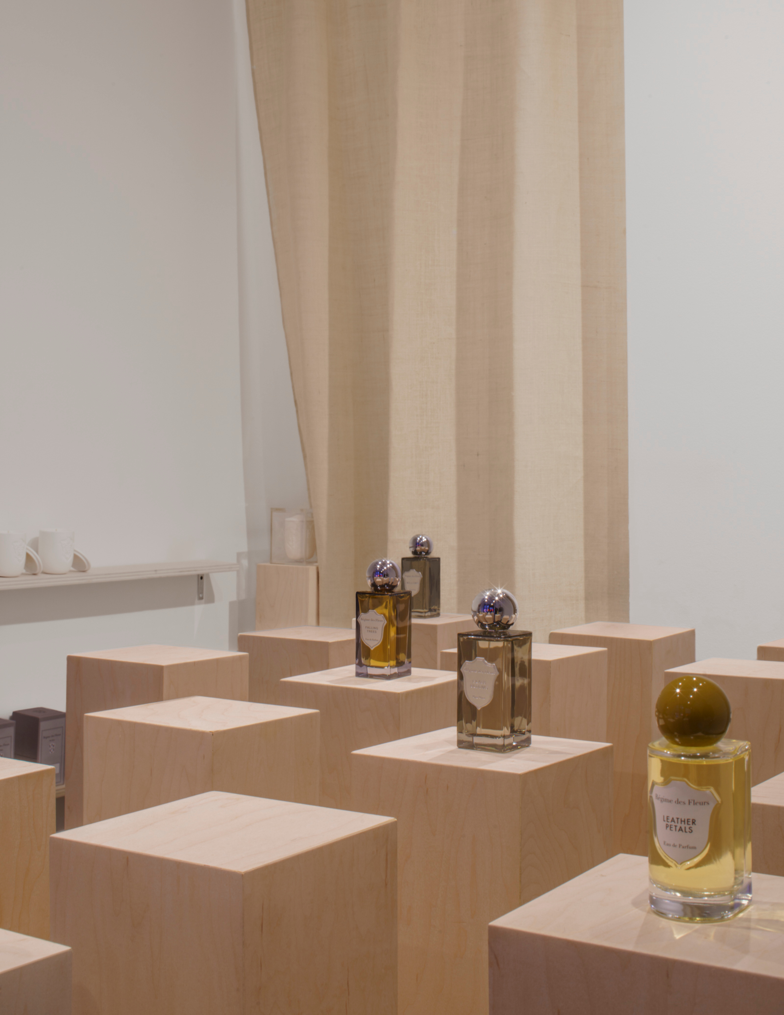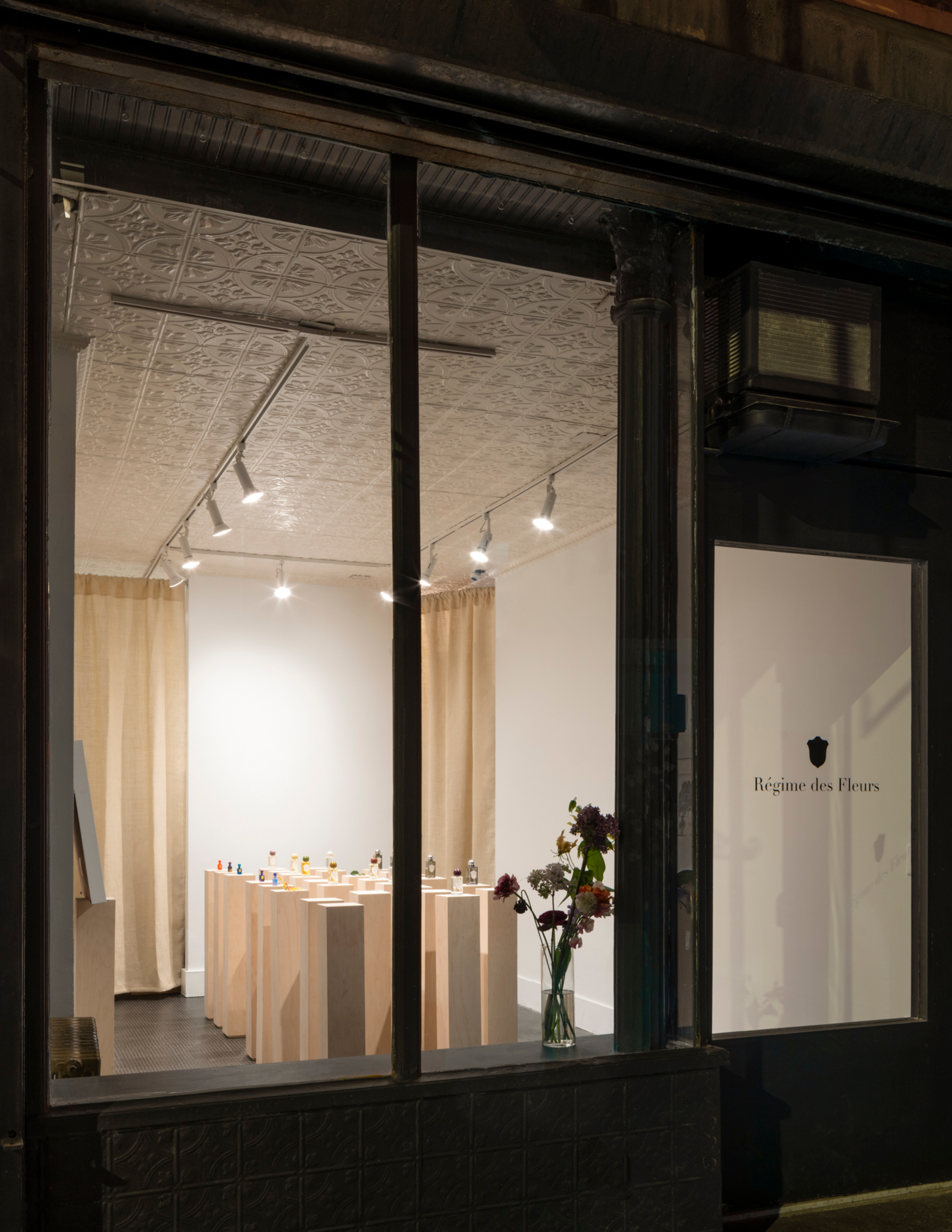 In an ongoing collaboration with Regime des Fleurs, we designed a short-term pop-up shop that could be installed in an hour while giving the brand the opportunity to stage infinite arrangements of small objects over 36 plinths arrayed in a grid.